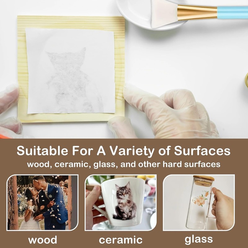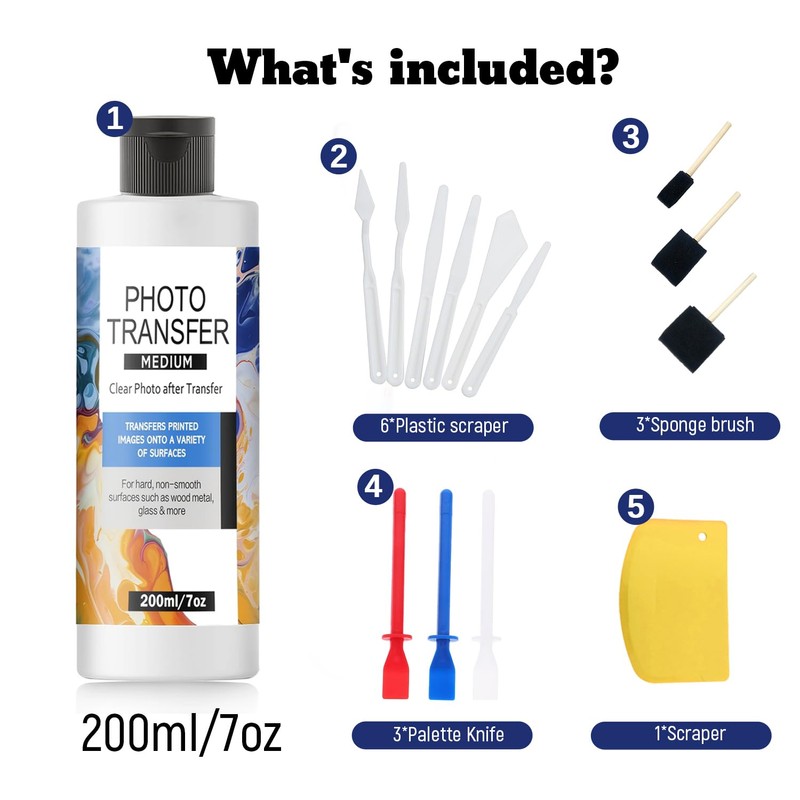 OOTDART Photo Transfer Medium - Multi-purpose medium formula for transferring your photos to a variety of surfaces. 8-ounce size. OOTDART Accessories - The Pixiss accessory kit includes 3 pairs of gloves, a 4 inch rubber brayer, 3 foam brushes (1 inch, 2 inch, 3 inch), 5 plastic spreader tools and 3 plastic spreaders (5 inch, 4 inch, 3 inch). Apply with brush or sponge applicator.