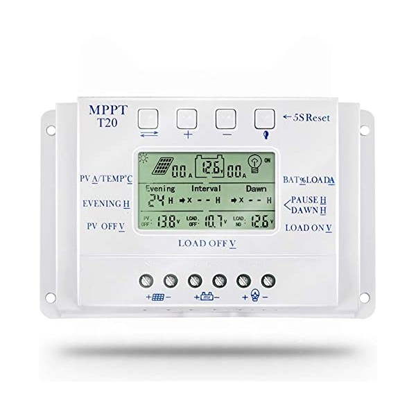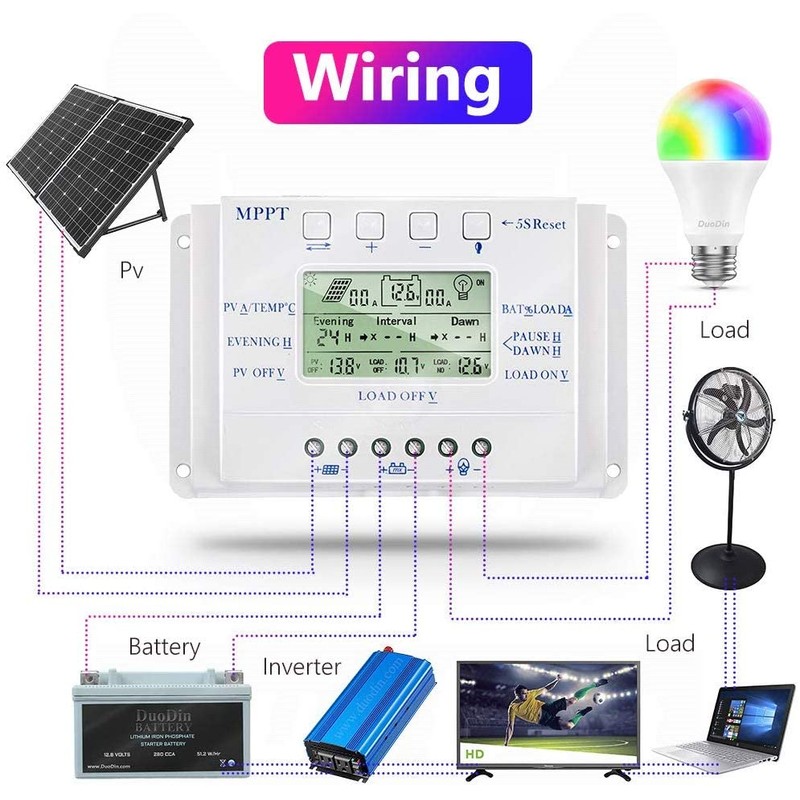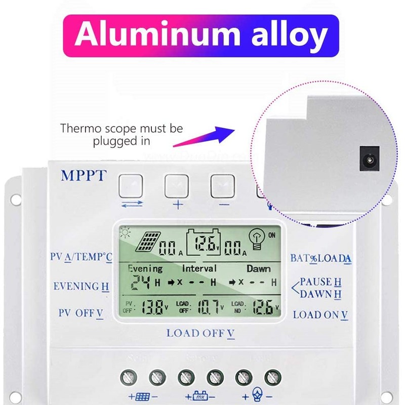 - MPPT Charge Controller -- This is a compatible MPPT charge controller PWM intelligent/efficient/energy saving, it has efficient MPPT controller charging function to automatically track the maximum power point, 10%-30% higher than the normal controller charging efficiency.