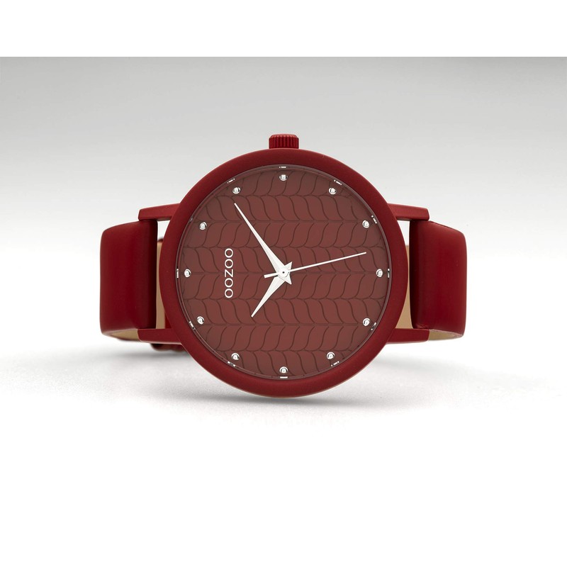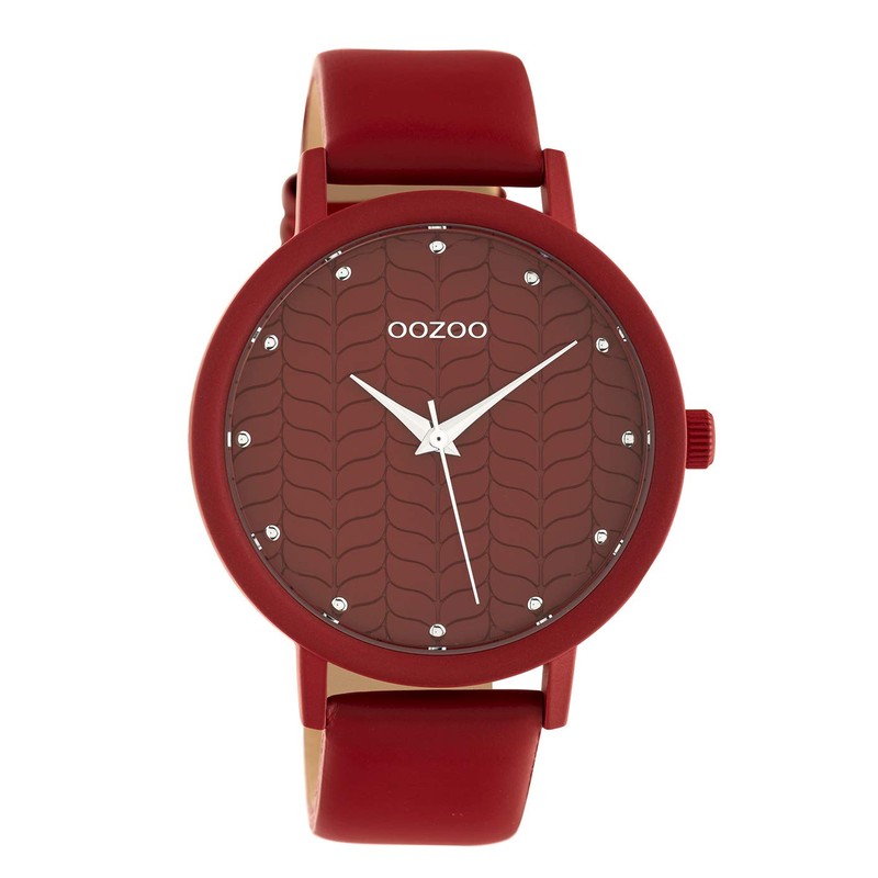 Oozoo Women's Watch with Leather Strap Color Line with Floral Pattern in Dial 45 mm, C10656 - Red/Red, Strap.