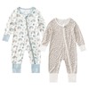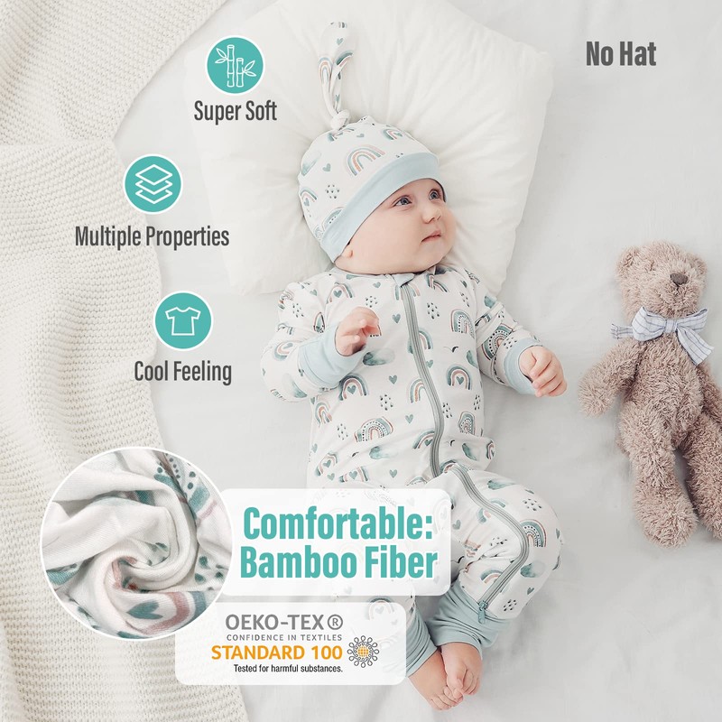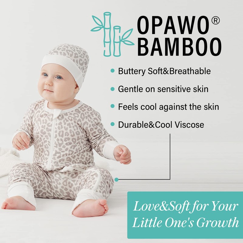 OPAWO Premature Baby Clothes, 2 Pack Baby Pajamas with Mitten Cuffs Bamboo Rayon Super Soft Baby Sleepwear 2-Way Zipper with Easy Accessibility Stretch Fit and Footless (Rainbow/Leopard,3-6 Months)