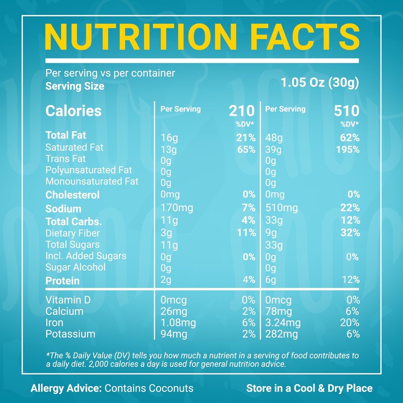 - Energize Naturally - Enjoy our toasted coconut flakes with a blend of honey, natural flavors, and sea salt for a crispy and light snack suitable for any occasion.