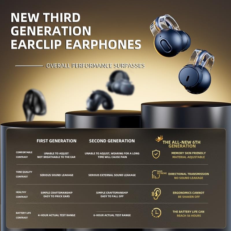 - Realistic stereo sound and clear communication - Our open clip on earbuds are equipped with advanced dynamic drivers that provide powerful stereo sound and capture subtle differences in your favorite music. It can provide an unparalleled calling experience and achieve seamless face-to-face communication. Very suitable for users who value crystal clear audio during calls and media playback.