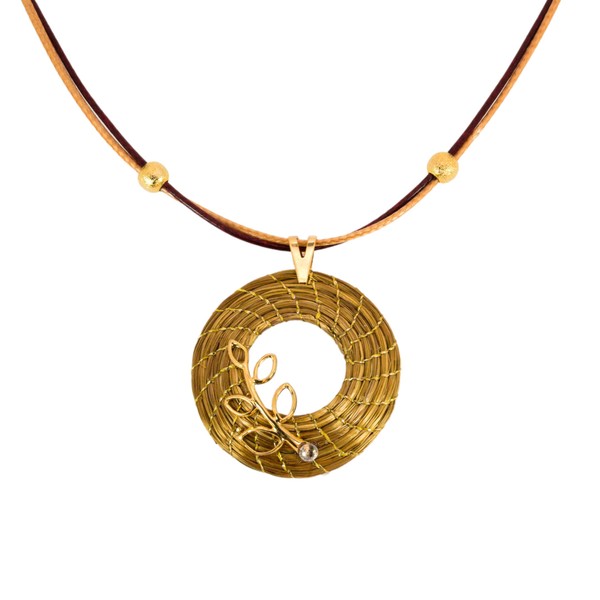 Open Mandala Necklace 3 cm Vegetable Gold with Branch