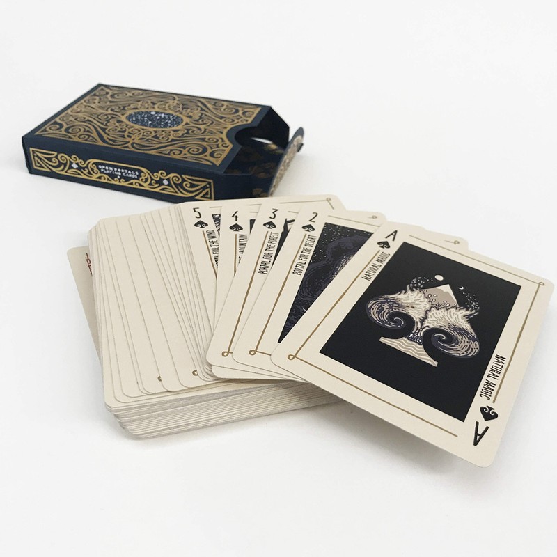 - The Playing Cards box is printed with white foil and gold foil on the exterior and interior.