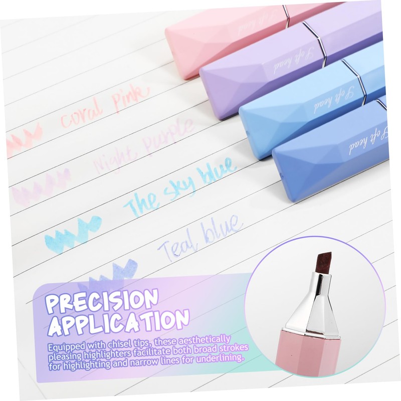 Chisel Tip Highlighters Their clarity makes highlighted text remain legible, making them an ideal marking tool for students, professionals, and readers alike.Teacher Highlighters Introducing our highlighters with chisel tips and a pastel color.highlighter brush These highlighters not only deliver a gentle touch of color to your documents but also prevent annoying desk rolls, keeping your workspace tidy
