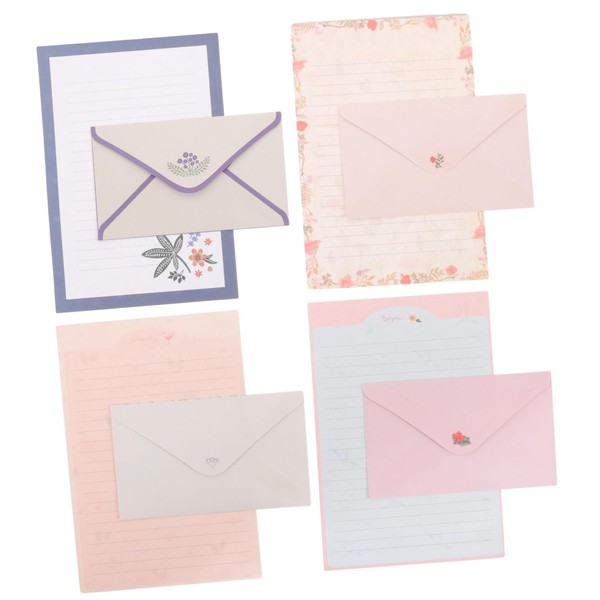Operitacx 4 Sets Cute Floral Writing Paper with Envelopes Cartoon Themed Stationery Kit for Letters Notes and Invitations Ideal for Creative Writing and Personal Correspondence