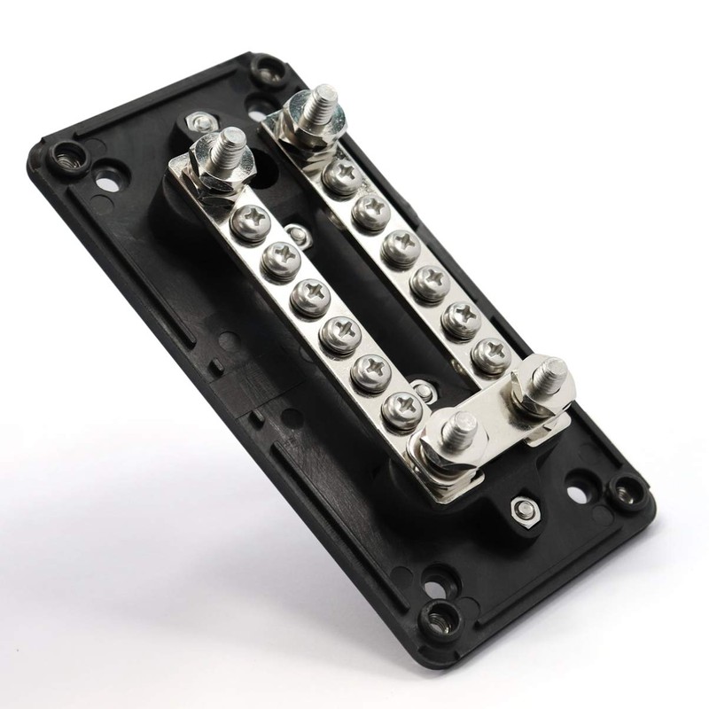 car bus bar with cover Glass fiber reinforced nylon base and enclosure for great mechanical strength and durability.boat Power Distribution Block High rated bus bar (100A) with terminal studs and removable for convenient wiring.Power Distribution Block with cover This item is a High rated bus bar (100A) with terminal studs
