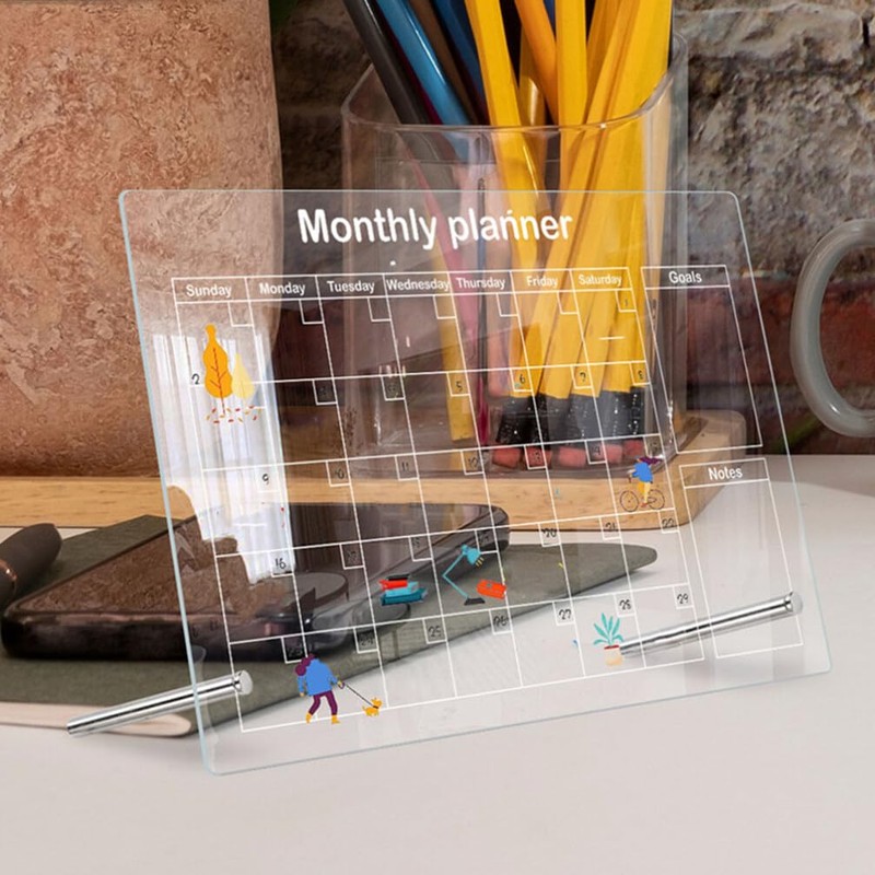- 👍👍👍Desktop Whiteboard Acrylic Monthly Planner Dry Erase Board With 2 Nails Stand 12x8 Inch To Do List Board ,This desktop dry erase board is suitable for most people, office staff, students, teachers, etc.