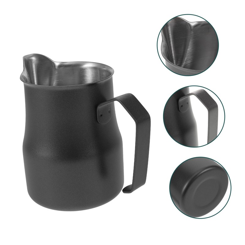 cup for milk The stainless steel material is safe and durable, ensuring that this frothing cup will last for years to come.milk frother The sharp spout allows for precise pouring, making it easy to create beautiful latte art.milk frothing jug Our milk frother pitcher combines style and functionality in one sleek package.coffee pitcher The capacity is for making a variety of coffee drinks, while the embossed design provides a secure grip for better control
