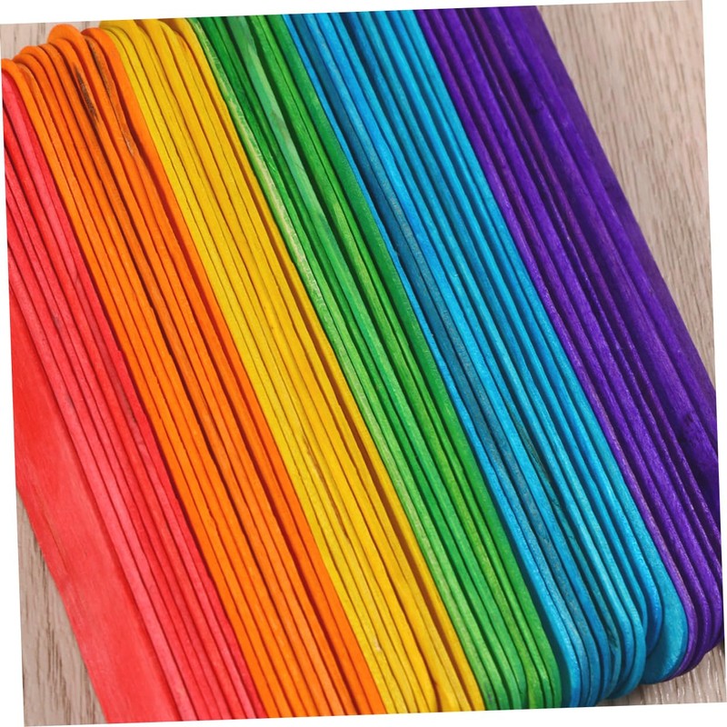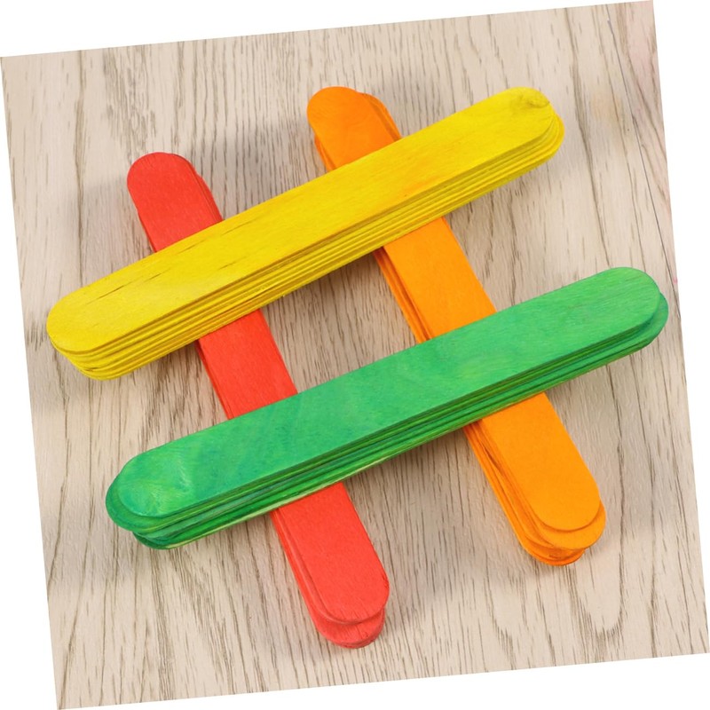 1 x set of 100Pcs Colored Wood Craft Sticks Popsicle Wood Colorful Craft Stick for DIY Crafts Creative Designs (Random Colors)