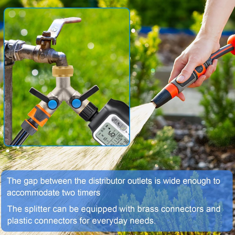 OPERMAXER 2 Way Y Distributor, Tap Water Distributor with Extended Handle, 3/4 Inch Brass Splitter with Individual Shut-off Valves