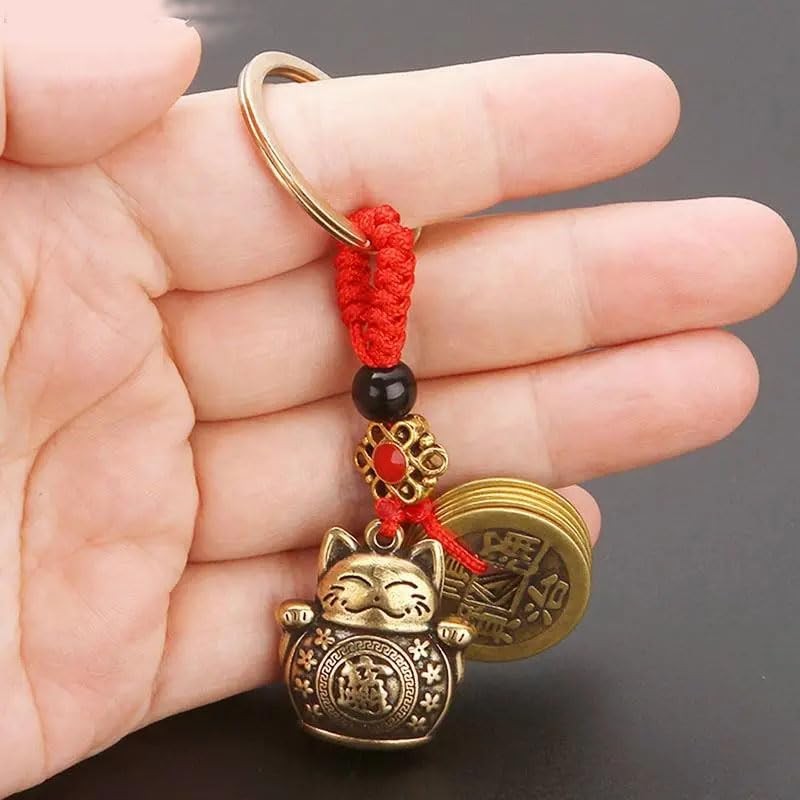 - Package Included:3Pcs Lucky Pure Brass Fortune Cat Keychain with Five Emperors Money Coins(If there are any problems with the product, please send us pictures.Tell us more details about this problem.)