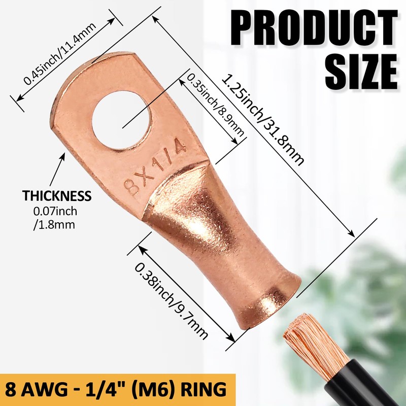 | Size: | 8 Awg - 1/4" (M6) Ring |