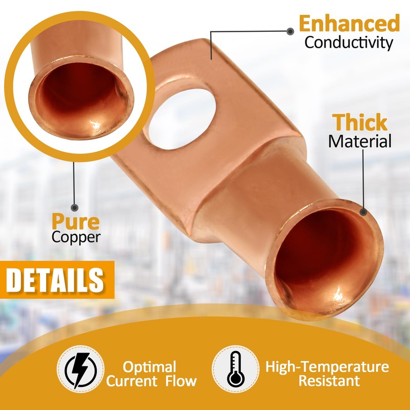 - Rugged Construction: Engineered for long-lasting performance, these copper cable lugs withstand demanding conditions while maintaining mechanical integrity for reliable electrical connections.