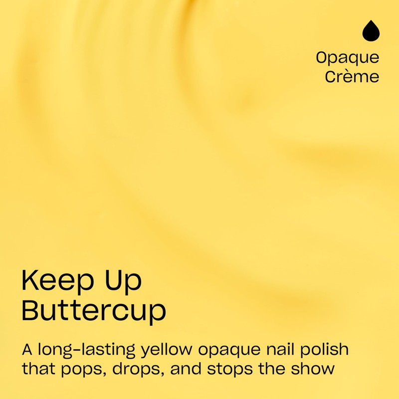 - Keep Up Buttercup is a long-lasting yellow nail polish from the OPI Make 'Em Jelly! Collection.