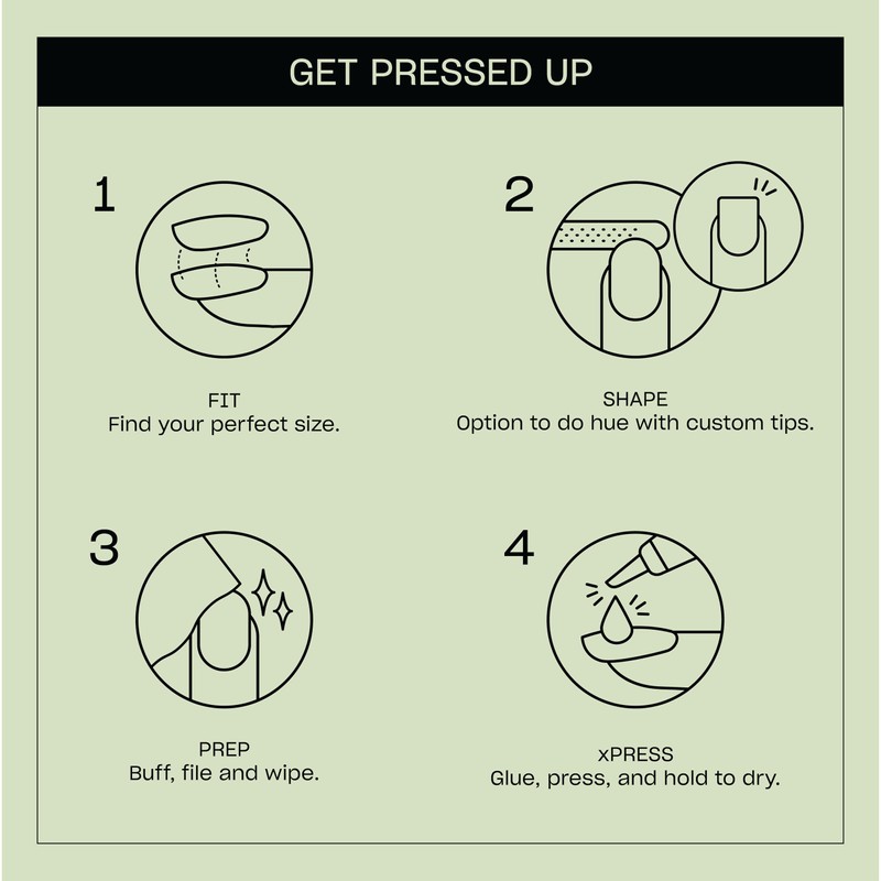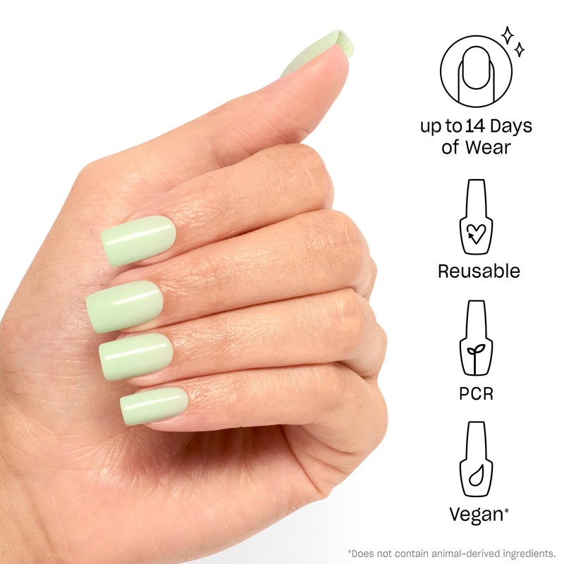 • Vegan, reusable press-on nails made with up to 94 percent PCR materials to press again and again