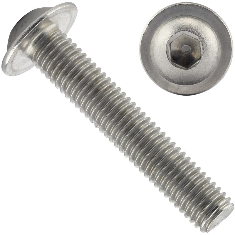 OPIOL QUALITY® Rounded Head Screws with Flange and Hexagon Socket ISO 7380 M6 x 100 mm Made of Stainless Steel A2 V2A (Pack of 10) Flat Head Screws Full Thread Flange Screw Rustproof Stainless Steel