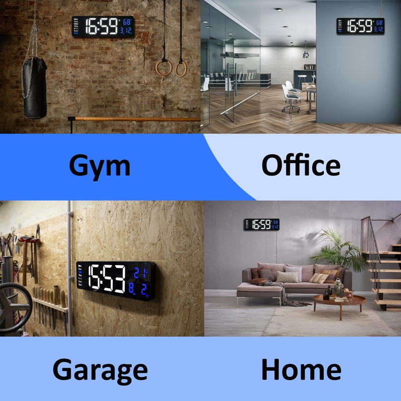 - Versatile Digital Clock for Multiple Spaces: Perfect as a digital clock for wall mount in bedrooms, gyms, offices, garages, or living rooms; this clock’s large display ensures great visibility.