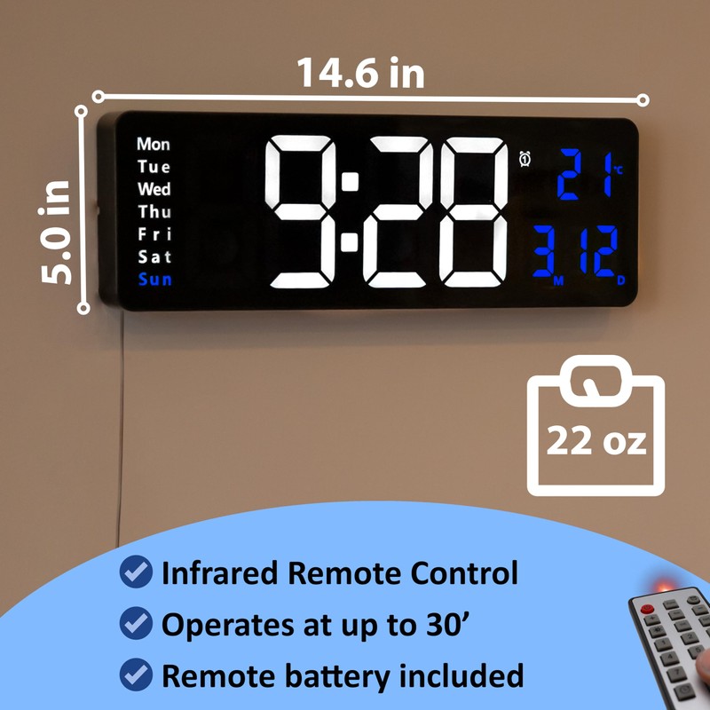 - Digital Wall Clock with Temperature and Large Display: Switch between °F or °C on this big digital clock for classroom, gym, office or home; so you can track room conditions on your wall.
