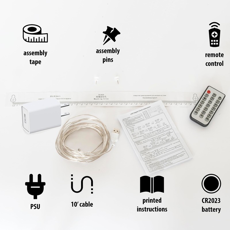 - Complete Set with Power Supply: Our LED wall digital clock with large display includes a power brick. This cute digital wall clock is ready right out of the box. No need for additional items.