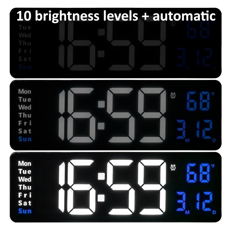 - Digital Clock for Walls with Large Date and Day Display: Easily see the date and day of the week with this big digital wall clock in your home, office, or gym.