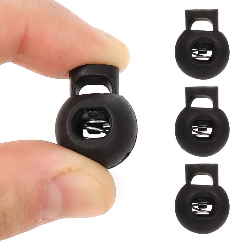 - 【Premium Material】The single-hole round cord locks toggles are mainly made of durable PP plastic, non-toxic and safe to use, durable and lightweight, the spring-loaded design can be applied to lock the cable and make it firmly, the plastic spring structure is easy to use and can be convenient for your daily life.