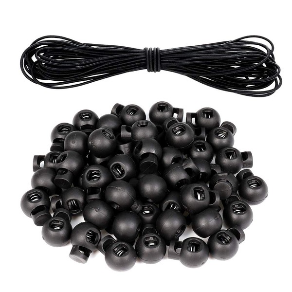 - 【Package】Comes with 50 pieces black plastic spring cord locks, each size is approx. 19 x 15 x 5mm (length x width x hole diameter). Elastic cord: about 10m / 32 feet in length, 2.5 mm in diameter, appropriate size fits common uses.