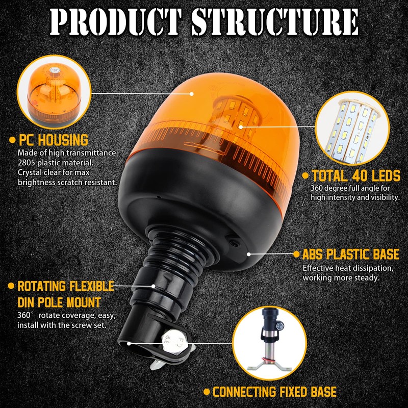 OPP ULITE 40LED Strobe Warning Beacon Light, 3 Flash Modes 40W 360° Rotation Amber Flashing Emergency Safety Waterproof Warning Light for Vehicle Forklift Truck Tractor Golf Carts UTV Car (KM180)