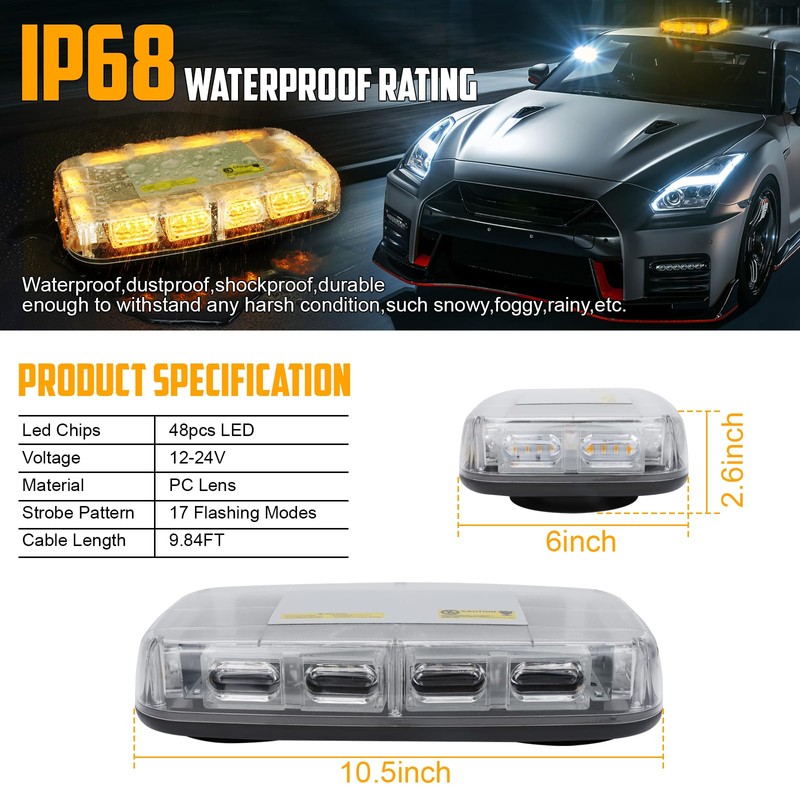 • 【Enhanced Visibility At Night】Strobe flashing light has 48pcs high intensity leds that provide a super bright 360°coverage,ensuring more effective warning to other vehicle,maximum illuminate the surroundings and safety on the road.It is even visible during the daytime condition.