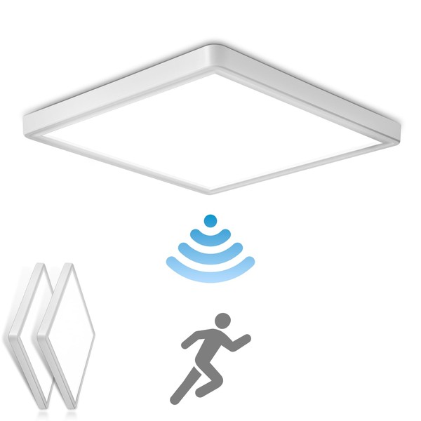 OPPEARL [Pack of 2] LED Ceiling Light with Radar Motion Sensor, 18 W, 1800 lm, 4000 K Lamp with Motion Sensor Indoor, IP44 LED Ceiling Light, Flat for Stairs, Balcony, Hallway, Basement, 23 x 23 x 2.4