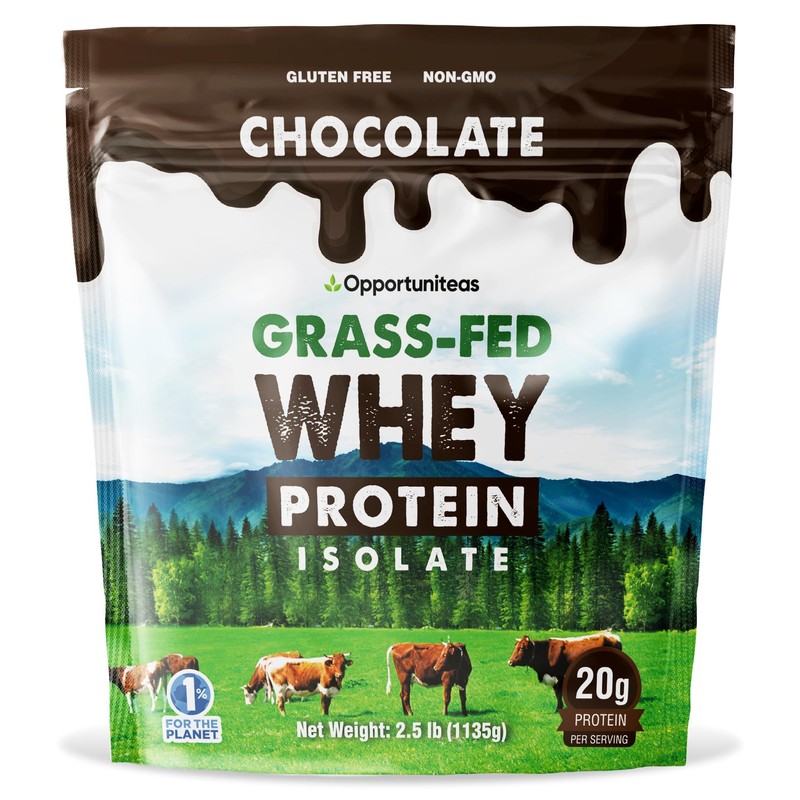 Opportuniteas Opportuniteas Grass Fed Chocolate Whey Protein Isolate Powder - 20g Protein Powder Without Artificial Sweeteners, Hormone-Free Cows, Non GMO - 2.5lb