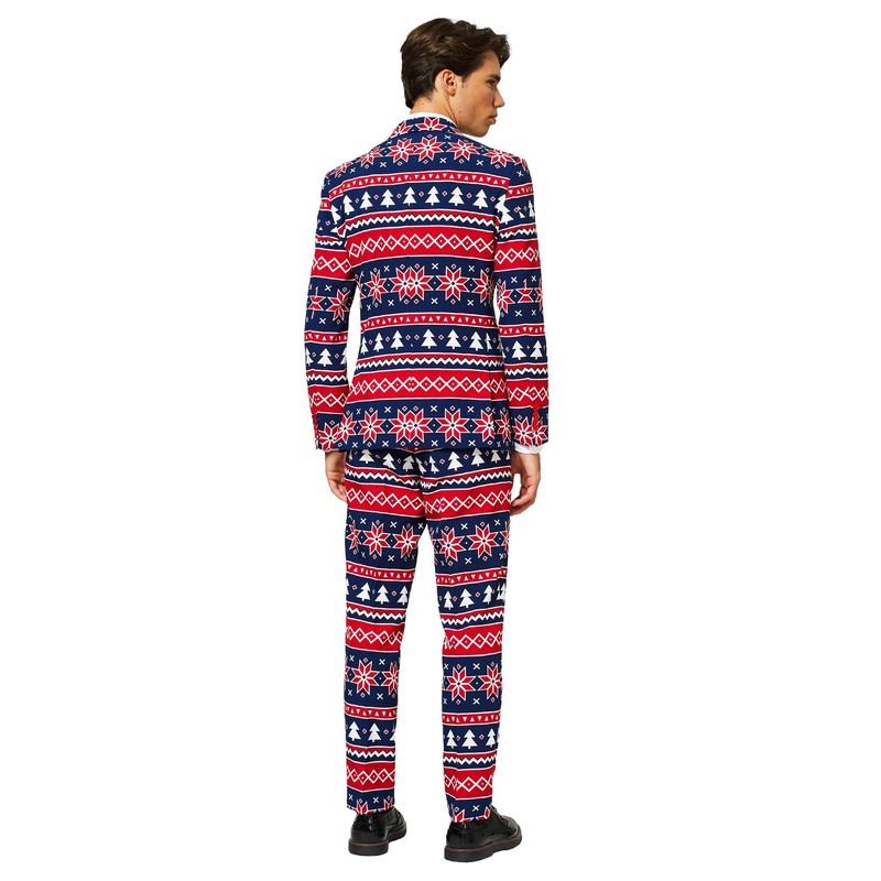 - NICE AND NORDIC: Into Nordic prints, but don't like itchy wool? We get you. This ugly Christmas sweater suit has the classic pattern of cozy sweaters, is as comfortable as your favorite pajamas and has the stylish cut of a well-tailored suit.