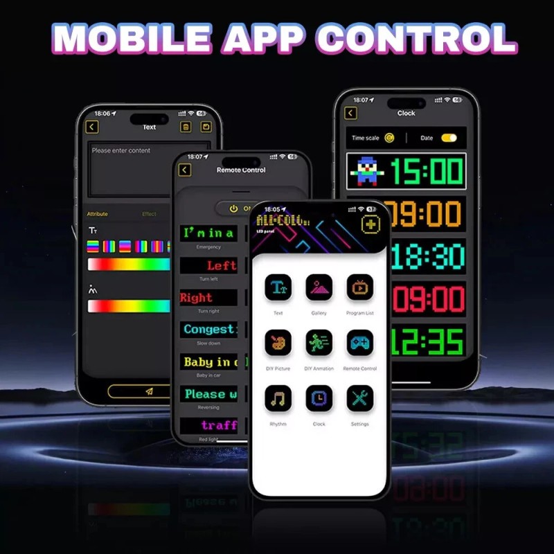 Smart APP Control. Connect the LED matrix through the APP, you can DIY design text, patterns, animations according to your own needs and scenes, and you can also adjust the brightness and speed to perfectly meet your needs.