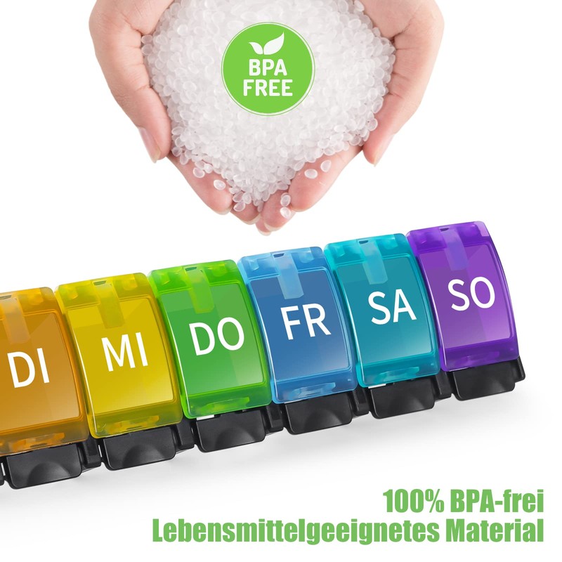 - BPA-free materials: 7-day pill box is made of 100% food-safe PP material, safe and durable.