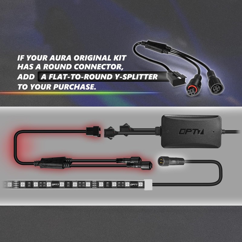 OPT7 Aura 2-PCS Flat to Round Splitter Y Cable, 4 Pin RGB SM Male to Waterproof Female Conversion Connector for Aura Pro Bluetooth Control Box, Compatible w/ OPT7 Connect App