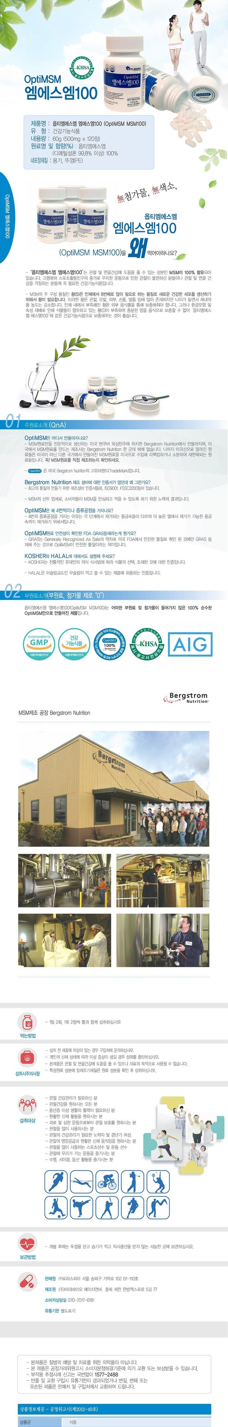 Opti MSM MSM 100 120 tablets / 옵티 MSM 엠에스엠 100 120정X3박스 식이유황 관절영양제 디메틸설폰 뼈건강