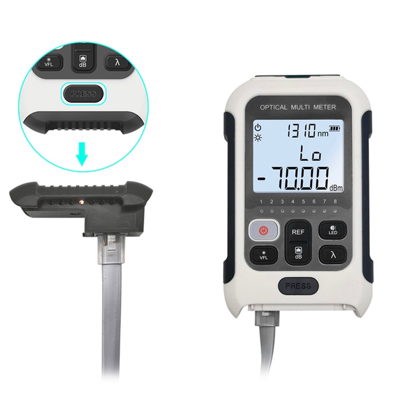 1、Fast and Accurate: The multifunctional optical power meter has a built in sensitive chip for accurate measurement results and quick response. 2、10 Wavelengths: Can measure 850, 980, 1270, 1300, 1310, 1490, 1550, 1577, 1625, 1650nm wavelengths, covering most of the needs of communications engineering maintenance. 3、Low Battery Consumption: This multifunctional optical power meter has low battery consumption and can operate continuously for 120 hours. 4、Strong Function: This multifunctional optical power meter has relative power calculation and calibration function with stable performance. 5、ABS Housing: This multi functional optical power meter uses ABS plastic as the housing, lightweight and wear resistant, sturdy structure, easy to carry.