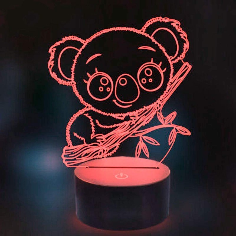 Optical Illusion 3D Koala Night Light 16 Colors Changing USB Power Remote Control Touch Switch Decor Lamp LED Table Desk Lamp Brithday Children Kids Christmas Xmas Gift