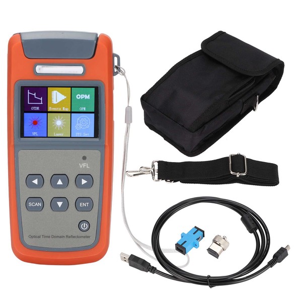 1、5 in 1: The fiber optical power meter has 5 in 1 function of OTDR, Event Map, OPM, VFL, OLS, etc. Evaluate FTTx and access network construction and maintenance, identify fiber breakpoints, measure fiber cable lengths, and calculate relative optical power loss. 2、2.6in Screen: The 5 in 1 fiber optical tester has a 2.6in screen, data is saved in SOR format, long battery life, and can perform 5000 measurement operations. 3、Dustproof and Waterproof: The fiber optical power meter is dustproof, waterproof and shockproof, specially designed for field use, with test wavelength 1310/1550nm, 22dB dynamic range. 4、OTDR Technology: The fiber optical tester adopts the principle of OTDR technology, and the integrated analysis software ensures accurate and easy detection of fiber fault locations. 5、Fault Locator: The 1550nm fiber optical tester has a built in Visual Fault Locator (VFL), which is convenient for finding blind spot faults. 6、Light and Accurate: The optical time domain reflectometer is designed to be lightweight, easy to use, accurate, repeatable, and designed for automatic arterial width control.