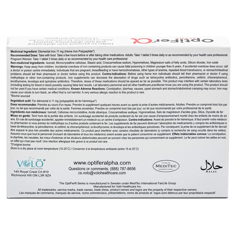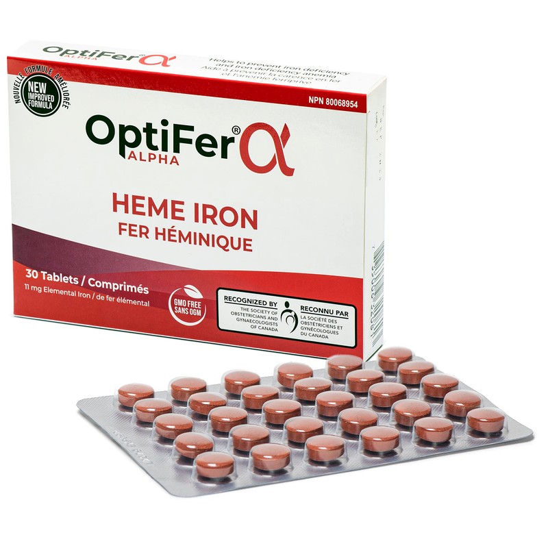 OptiFer Alpha tablets are a natural heme iron supplement with 11 mg of elemental iron per tablet. Safe for pregnant women, this iron supplement is made from non-GMO (genetically modified organisms) bovine.