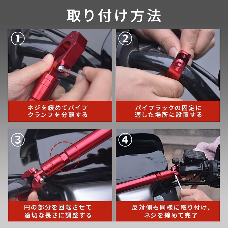 - ✅Motorcycle balance bar fits seamlessly with 22mm diameter handlebars. Hinged clamp for easy installation and adjustable support bar accommodates a variety of handlebar configurations. With the included spanner and instructions you can enjoy hassle-free installation