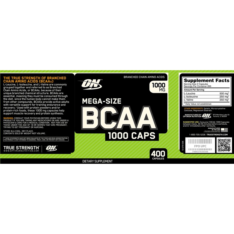 Optimum Nutrition 400 BCAA 1000 (400 Capsules)