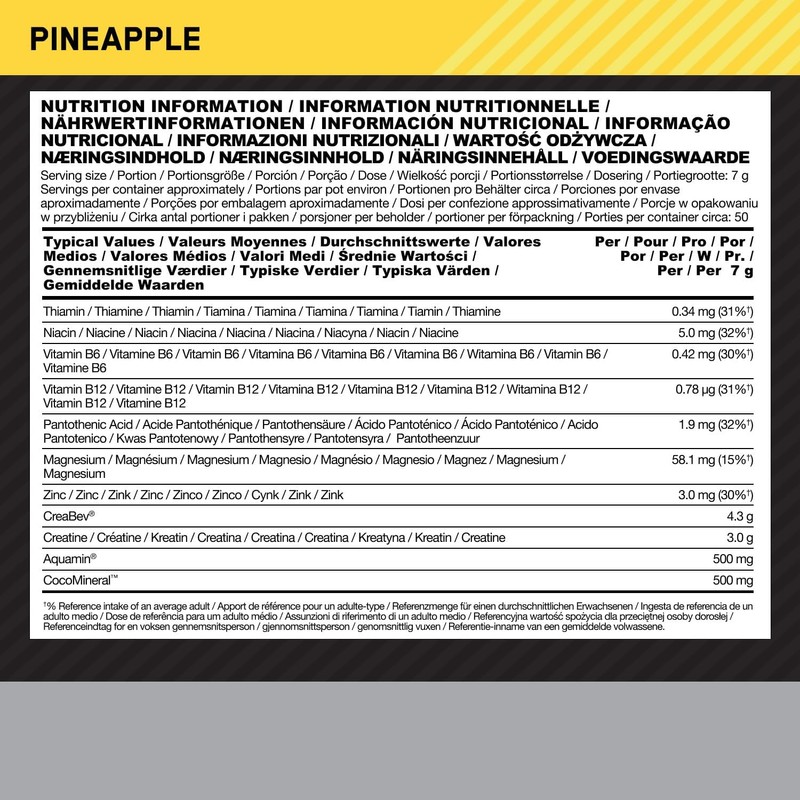 Optimum Nutrition Creatine Plus Creatine Powder for Performance & Power, with Aquamine Magnesium for Electrolyte Balance, Pineapple Flavour, 50 Servings, 350 g