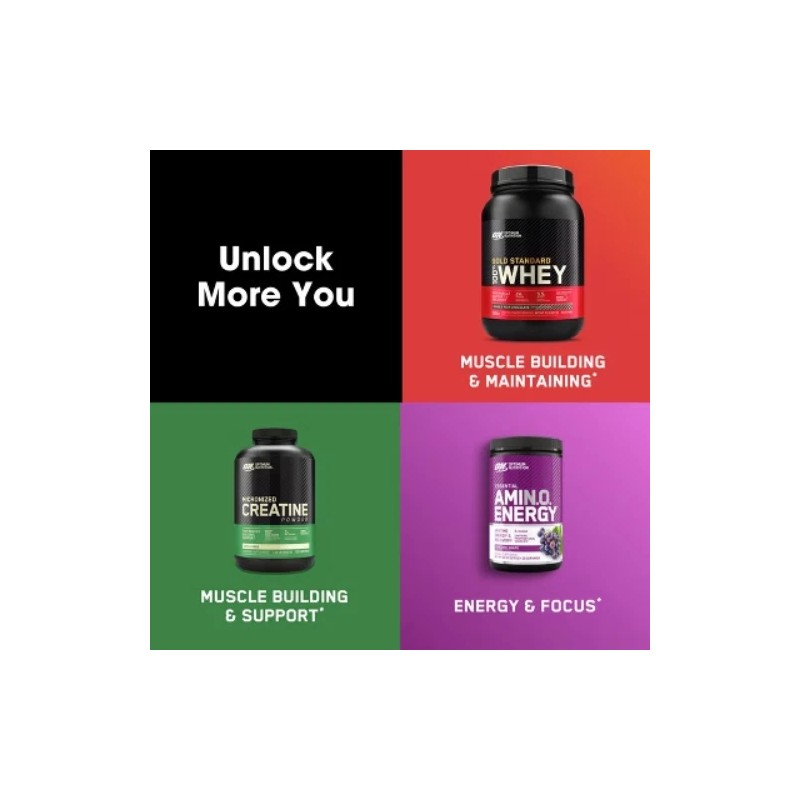 Optimum Nutrition Gold Standard 100% Whey helps you unlock your potential and get more from your workouts. Whey protein isolate is the primary ingredient, with excess carbs and fat ‘isolated’ out for a total of 24 grams of protein, 5.5g of naturally occurring branched chain amino acids (BCAAs), and 11g of naturally occurring naturally occurring essential amino acids (EAAs) per serving. With a wide range of tempting flavors to choose from, Optimum Nutrition Gold Standard 100% Whey gives you plenty of ways to keep workout recovery interesting.