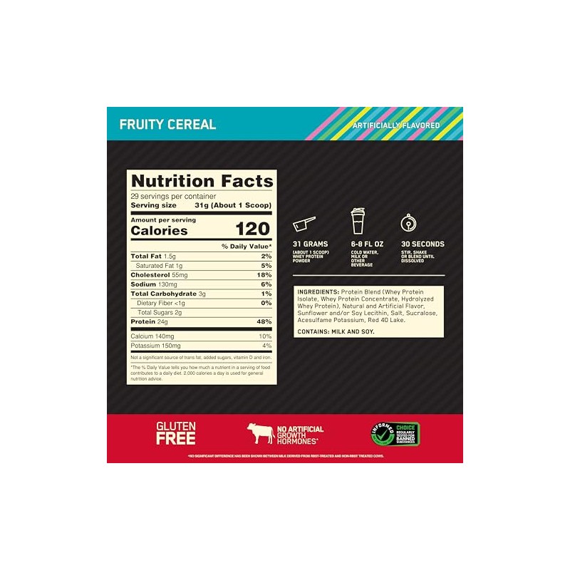Optimum Nutrition Optimum Nutrition New Flavor Gold Standard 100% Whey Protein Powder, Fruity Cereal, 1.98 Pound (Pack of 1) (Packaging May Vary)