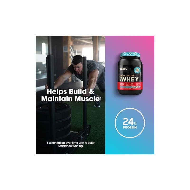 - Gold Standard 100% Whey - 24g of protein per serving to help build and maintain muscle when taken over time with regular resistance training