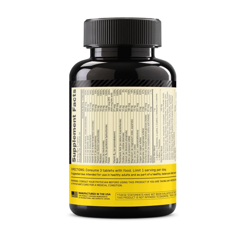 Support your immune system and support your overall health with Optimum Nutrition Opti-Men Daily Multivitamin specially formulated for active men. This men's daily multivitamin contains 21 essential vitamins and minerals, including Vitamin C, Zinc, Vitamin D, Vitamin E and Vitamin B12, to support your immune system, support gut health, support muscle recovery, support cellular energy and metabolism, and promote overall wellness. Optimum Nutrition Opti-Men daily multivitamin for men includes botanical extracts that can be built on through consumption of a healthy, balanced diet, plus one gram of free form amino acids. Each bottle contains a 30-day supply of 90 Opti-Men multivitamin tablets to help provide immune systems and nutrients for active men. Take 3 tablets with food. There’s more of you in you. Optimum Nutrition has been trusted to provide high quality in post-workout recovery, pre-workout energy, and on-the-go sports nutrition for over 35 years and in 90+ countries.