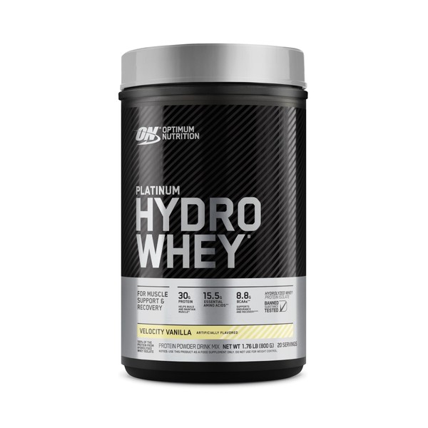 Optimum Nutrition Optimum Nutrition Platinum Hydrowhey Protein Powder, 100% Hydrolyzed Whey Protein Isolate Powder, Flavor: Velocity Vanilla, 20 Servings, 1.76 Pounds (Packaging May Vary)
