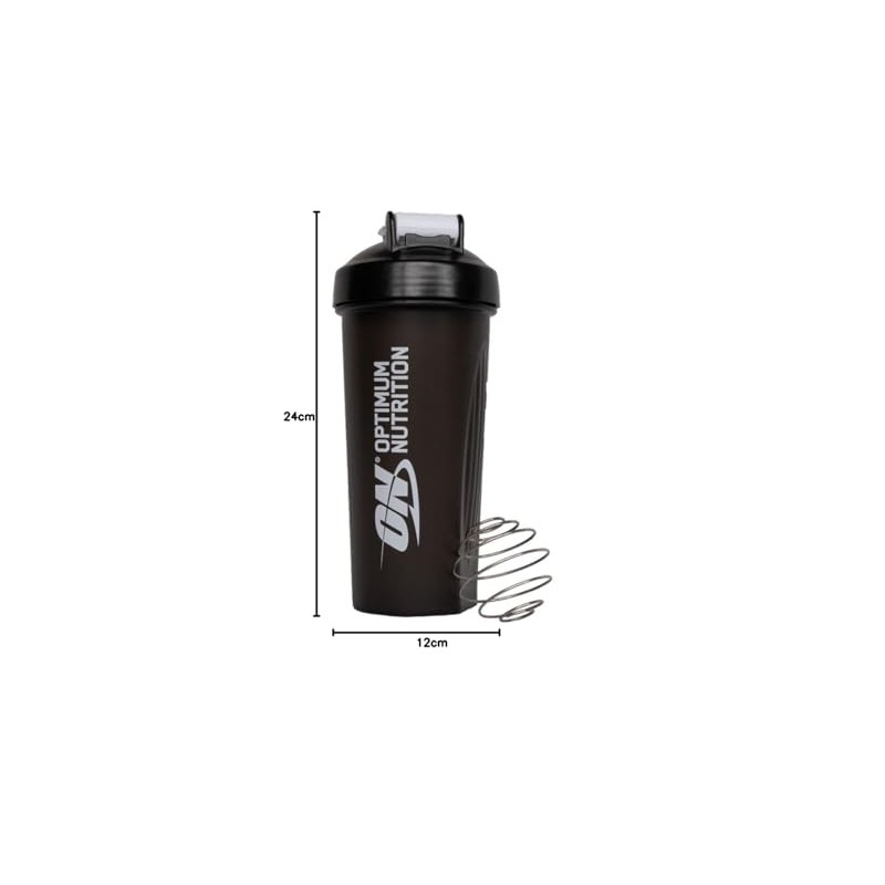 Optimum Nutrition, the Worlds #1 Sports Nutrition brand*, brings you the perfect gym and workout buddy; a sleek and comfortable shaker bottle, expertly designed for all your protein shakes. The Optimum Nutrition Shaker provides a generous 600 ml capacity, complete with stainless steel shaker ball, to effortlessly blend your choice of protein powder: from Gold Standard Whey and mass gainers to Amino Energy and other workout supplements. This unique gym shaker comes in a sophisticated Jet Black shade with the Optimum Nutrition logo embossed in white on one side, with a matching white Flip-Top Cap. The innovative screw top and the leak proof lid in our sports drinks bottle are perfectly engineered to keep liquids contained. Simply push down on the flip cap until it makes a distinctive snap, then shake the bottle with confidence that it is securely closed and ready to use, on the go & anytime. The ON shaker is BPA and DEHP-free, for even more peace of mind. A home fitness routine, CrossFit, or a gym workout will not be complete without essential fitness accessories. ON shaker works with any type of protein powder or pre-workout powder and meal replacement shake. It blends super quick and easy, whenever you prefer water or plant milk. It delivers consistently great taste with no lumps and is dishwasher safe, so you can reuse it safely multiple times. The sports drink shaker also doubles as a reusable water bottle, a perfect addition to your sustainable, eco-lifestyle. Whatever your goals are, accomplish them all with the Optimum Nutrition Blender Bottle, your must-have workout equipment. *Source: Euromonitor International Limited; Consumer Health 2023 Edition, Sports Protein Powder category, % RETAILER VALUE SHARE, 2022 DATA