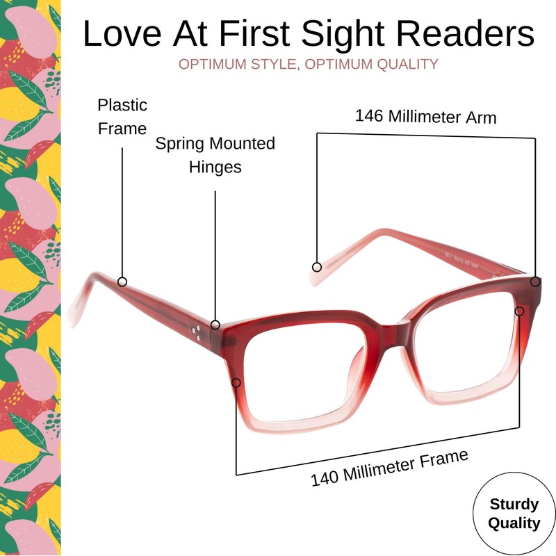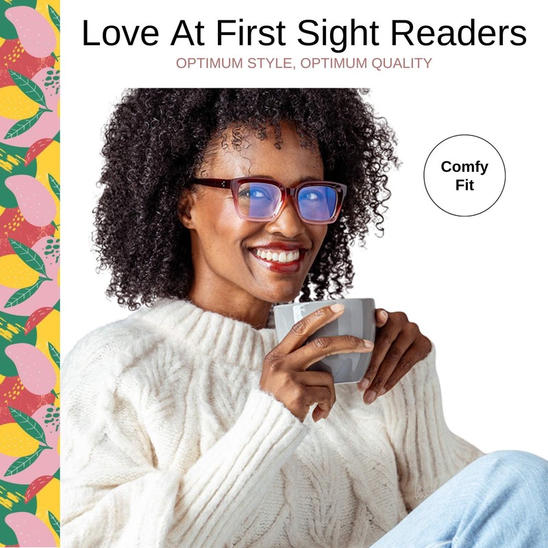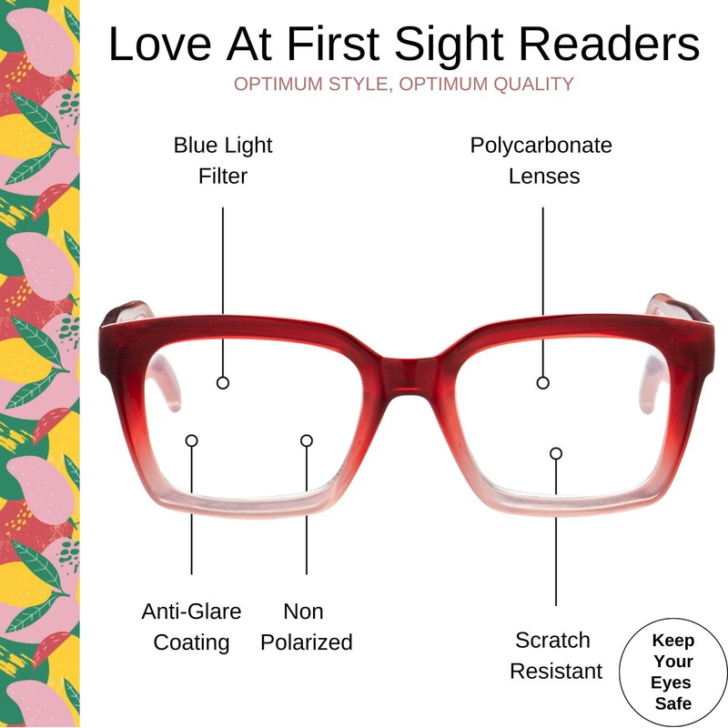 OPTIMUM OPTICAL Blue Light Filtering Scratch-Resistant Lens Rectangular Frame Magnifying Reading Glasses - Love at First Sight, +1.50